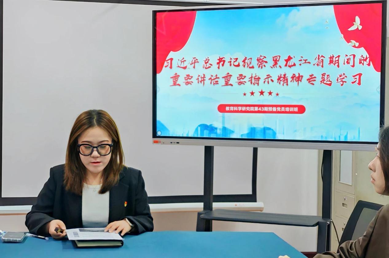 为深入学习贯彻习近平新时代中国特色社会主义思想,进一步学习宣传贯彻党的二十大精神,全面贯彻落实习近平总书记视察黑龙江省期间的重要讲话重要指示精神,深入开展党纪学习教育,夯实学生党员先锋工程。根据校学生工作部《关于举办第43期学生预备党员培训班暨党纪学习教育专题培训班的通知》,教育科学研究院于2024年4月22日至4月30日组织开展第43期学生预备党员培训班,本次培训共计32学时。