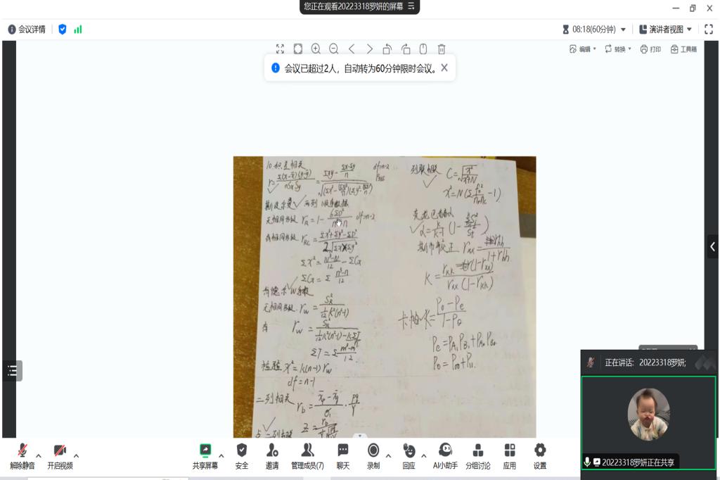 马明慧同学参考上学期的考试范围,结合PPT直观明晰地为大家梳理考点,对每章内容进行深入浅出的讲解,详略得当,循序渐进。最后分享自己的复习策略,她强调计算题要熟练掌握,每天进行规律复习,希望同学们都能够顺利通过考试。