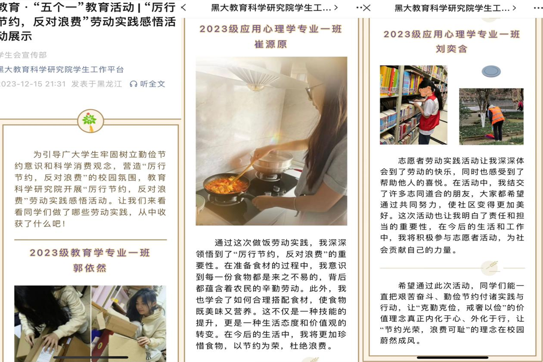 节约型校园建设实施方案》(校办发[2023]21号)相关要求,教育科学研究院面向学院全体学生组织开展“厉行节约,反对浪费”主题系列活动。现将活动情况总结如下: