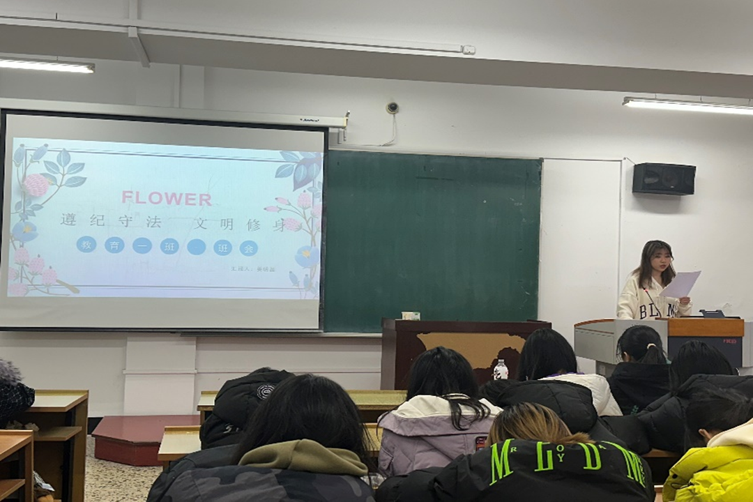 2023年12月15日,2023级各班召开“遵纪守法 文明修身”主题班会,班长领读领学《学生管理规定》具体内容,班级同学围绕“如何做一名遵纪守法的合格大学生”展开讨论。