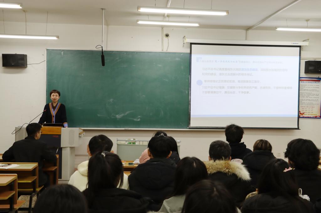 綦明霞从深刻认识习近平总书记视察黑龙江、擘画新时代新征程全面振兴宏伟蓝图的重大里程碑意义,坚定不移沿着总书记指引的方向勇毅前行;深刻领会习近平总书记重要讲话重要指示的丰富内涵和实践要求,切实肩负起新时代新征程龙江振兴发展的使命任务;坚决贯彻落实习近平总书记重要讲话重要指示精神,推动龙江振兴发展取得新突破三个方面进行讲授。綦书记号召同学们要贯彻落实好习近平总书记重要讲话重要指示精神,作为教育学子要立心、立行、立身,主动将个人成长和祖国的需要结合起来,有自信也有能力完成党和国家赋予的使命和任务,在色色视频