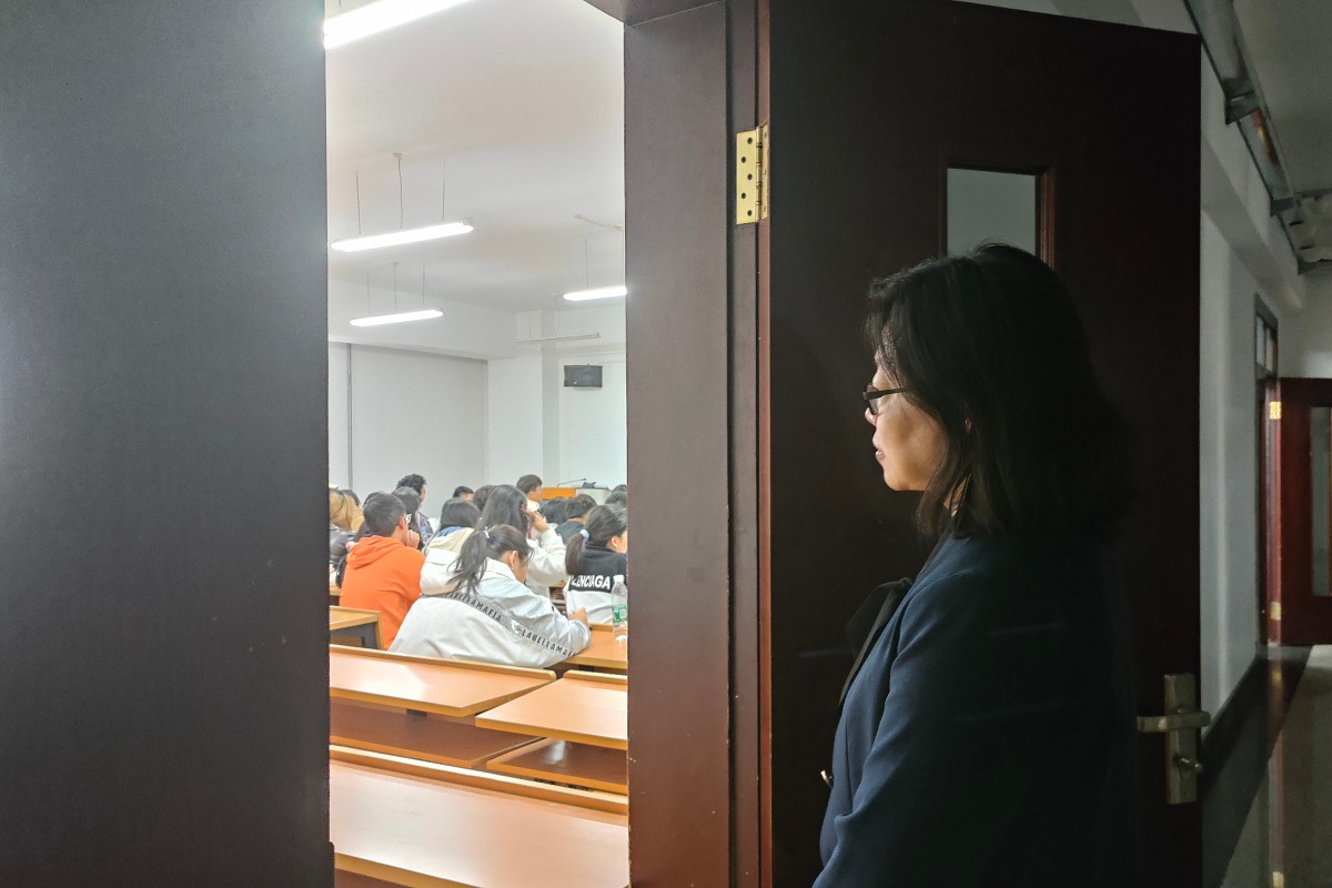 本科教育教学审核评估线上评估,真正达到“以评促建、以评促改、以评促管、以评促强”,保证本学期教学秩序和教学管理工作有序推进,10月9日至13日,教育科学研究院党总支副书记付丽及各年级辅导员深入各个年级教室,开展本学期教学秩序检查工作。