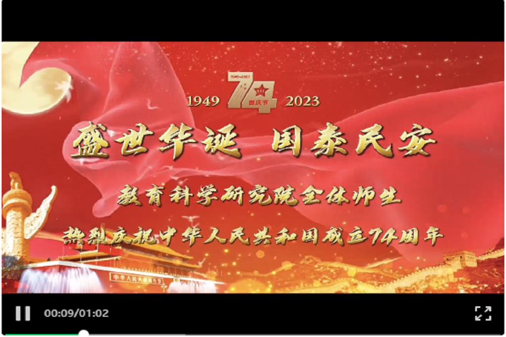 满怀一颗红心,砥砺向前奋进。我院组织多种活动、采取多种形式献礼祖国74华诞,教育学子在活动中感受浓厚的节日氛围,厚植家国情怀,践行使命担当。今后,教育科学研究院将立足实际、感恩奋进,继续开展爱国教育,不断弘扬爱国精神!(教育科学研究院供稿)