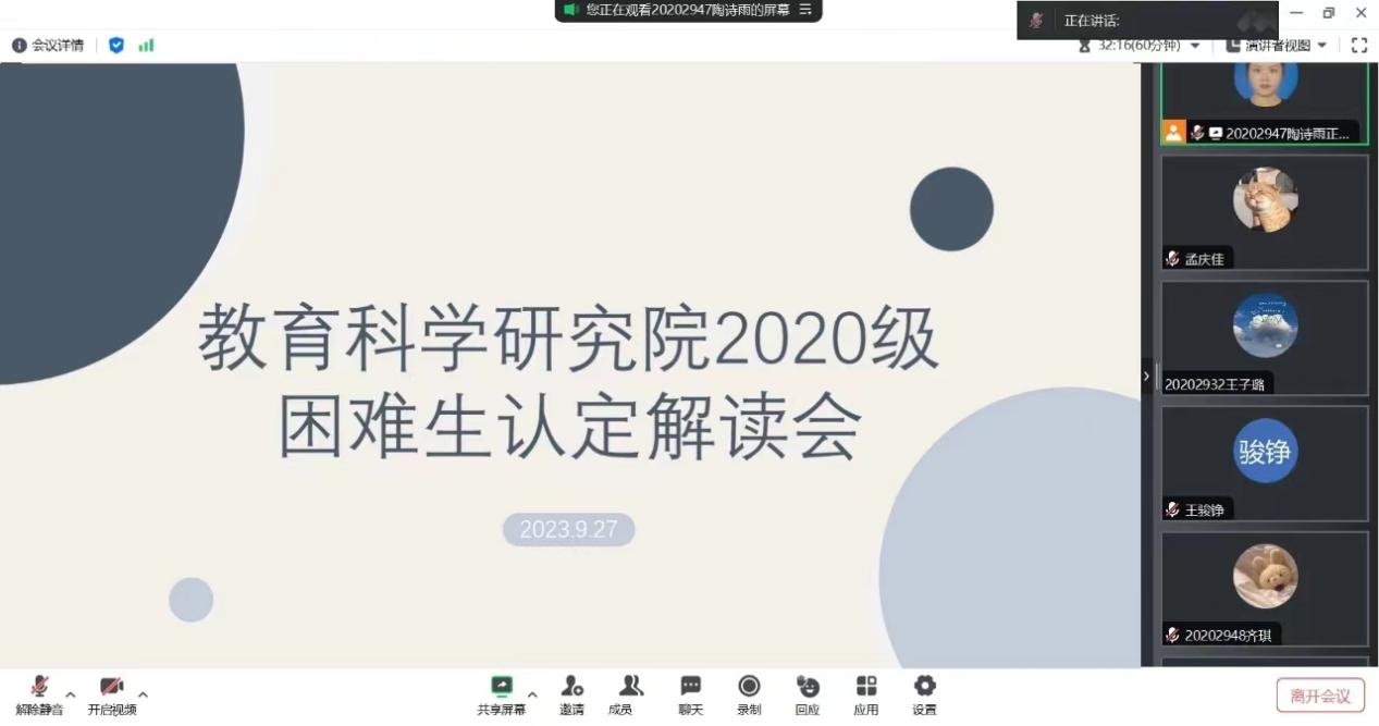 学院高度重视,严格按照认定办法开展工作,成立认定工作领导小组。2023年9月27日,院领导小组召开专项工作会议,制定《教育科学研究院2023-2024学年家庭经济困难学生认定实施细则》,确定家庭经济困难学生认定评议小组、互评小组、寝室评议小组名单,参照学生申请材料、日常消费、操行表现等情况严格进行民主评议及量化打分,确保家庭经济困难学生认定工作有序推进、公开透明。