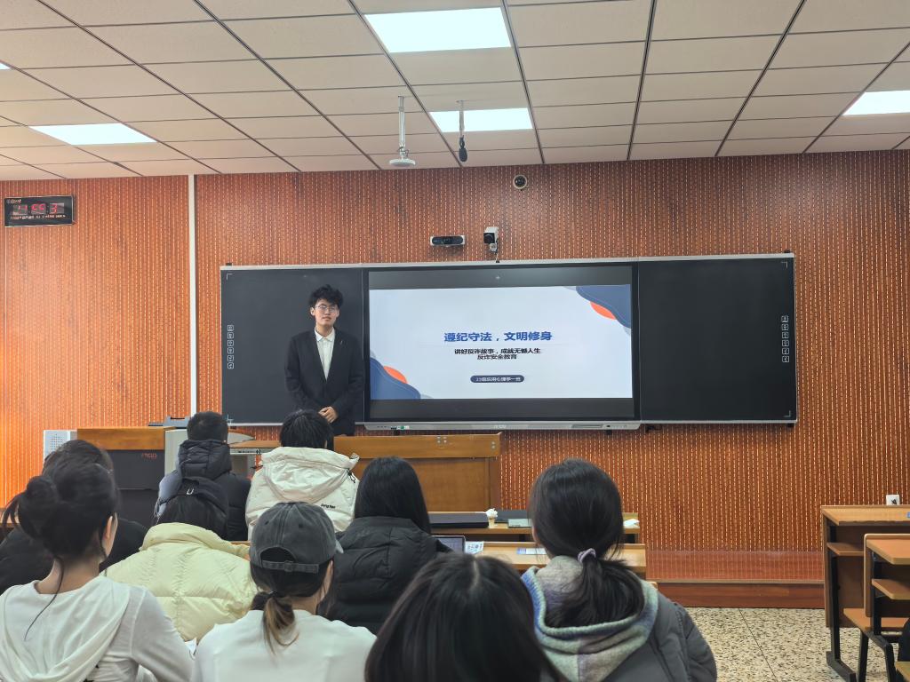 各班级开展“遵纪守法,文明修身”的主题班会活动,全院各年级学生共同参与。