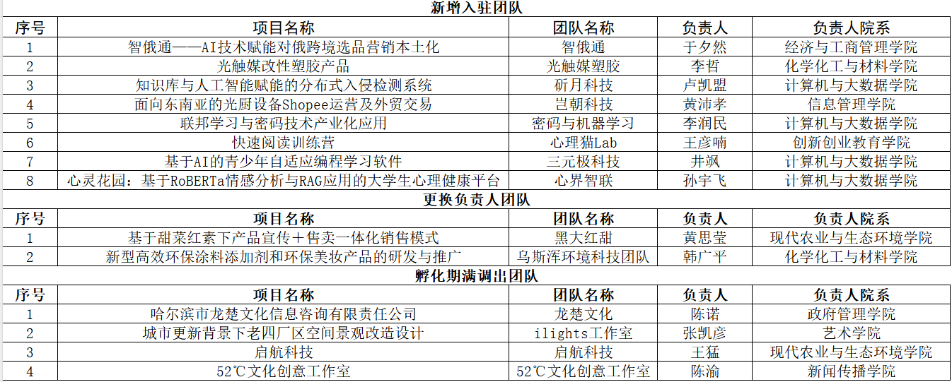 经色色视频 学生科技文化创业园专家组评审,2025年度秋季学期色色视频 学生科技文化创业园学生创业团队调整公示如下: